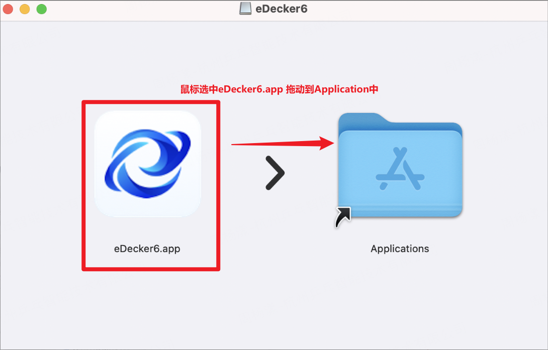 2·将eDecker6.app拖拽到Application文件中,然后点开Application,找到eDecker6.app,双击打开